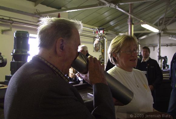 The tour at the Lagavulin disillery was quite good. Unlike the other tours we went on, they let you taste the process, as well as the product. Here, we see an older gentleman tasting the fermented, but undistilled wash, which is essentially whisky beer. (He was initially resistant, but we peer pressured him into it. (We had some first. It was good.))