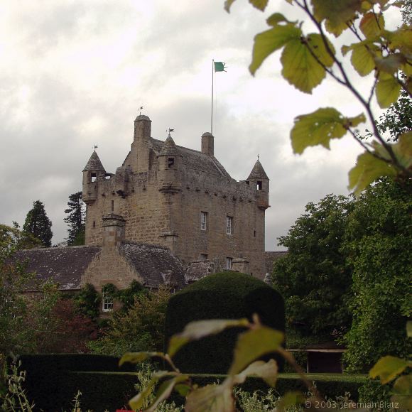 Cawdor Castle, viewed from the formal gardens. The castle has lots of gardens, and a maze!